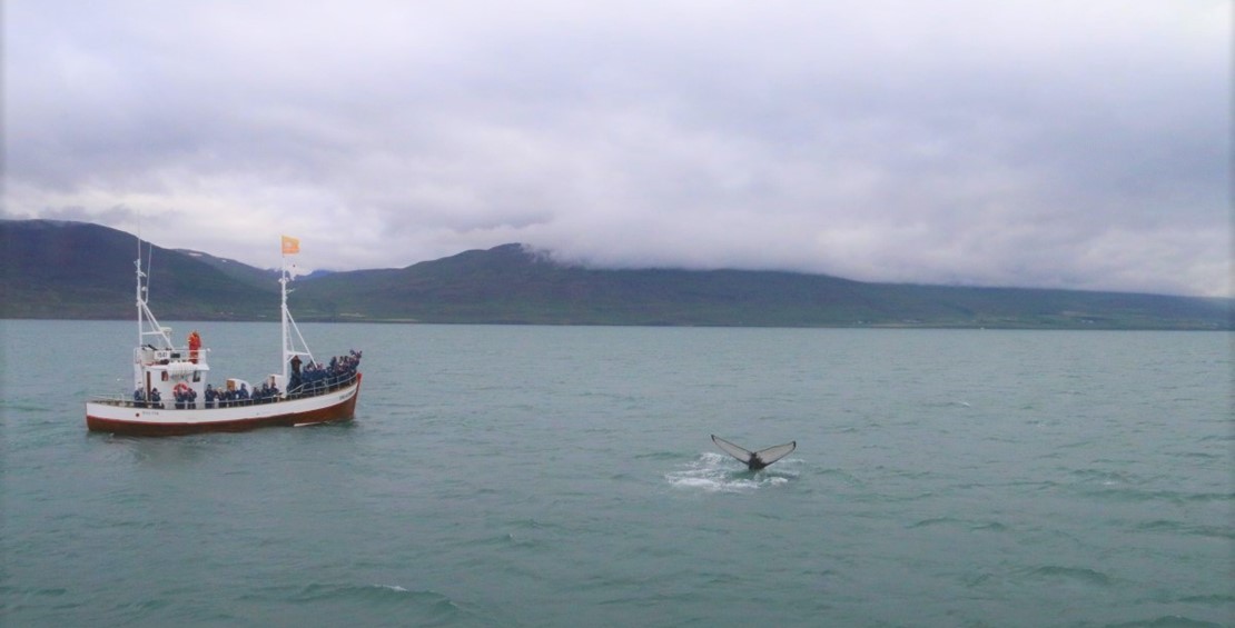 The whale watching tours in July were great and with such a success. Seeing humpback whale in over 99% of the tours only one very unlucky tour. In early July we were watching the whales close to Dalvik and around Hrisey Island. In the second half we were deeper in the fjord watching the humpback whales in great number from Hjalteyri. The unusual gathering around Hjalteyri was amazing seeing there up to 15 humpback whales and they were ready to show off and often came up very close to the boats.